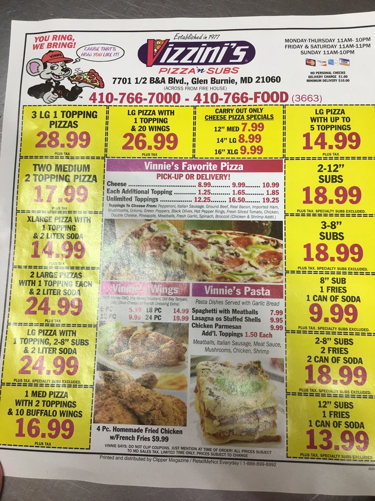 Welcome to Vizzini’s, your go-to destination for mouthwatering pizza and satisfying sandwiches in Glen Burnie, MD. The menu boasts a delightful selection, from classic NY-style pizzas to hearty subs that cater to every craving.